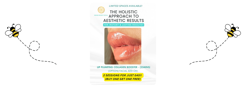 MBS specialises in aesthetic results that honour your whole being — Mind, Body and Soul. No needles. No harsh chemicals. No pressure. Just gentle, science-backed treatments that rejuvenate your skin, calm your nervous system and restore natural radiance. ---------- Lip Plumping Collagen Boost is a nourishing treatment designed to give lips a fuller, smoother, and more hydrated appearance. Formulated with collagen‑supporting ingredients, it helps enhance natural volume while softening fine lines around the mouth. With regular use, lips feel more supple and look visibly plumper, creating a healthy, youthful glow. It’s an easy, non‑invasive way to boost lip definition and keep them looking their best. Our Lip Plumping Collagen Boost can be done as a single treatment or used in conjunction with the MBS Facial Rejuvenation Glow Treatment for the ultimate glow up. ---------- Pricing • Standalone Lip Treatment - February offer: 2 sessions for £40 • Standalone Lip Treatment – 25 mins: £50 (Value £80) • 4-Session Lip Programme: £180 (Value £320) ---------- How does your booking work? Choose a package at any of the available dates and our expert will contact you to create your custom treatment plan. You will only be charged once the treatment has been agreed with our expert. ---------- All prices include a 20p non-refundable booking fee.